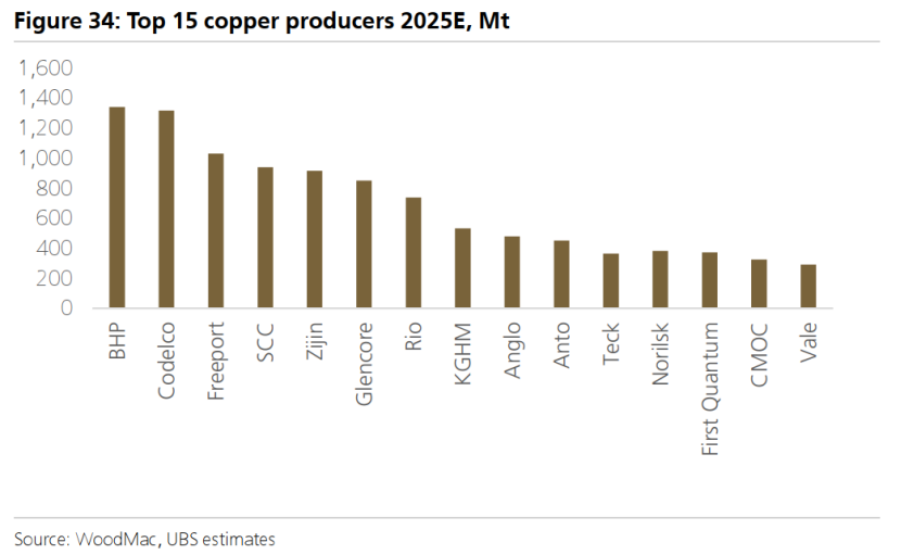 主要的上市基本金属生产商包括自由港麦克莫兰(FCX)、南方铜业(SCCO)、安托法加斯塔(ANTO)、紫金矿业(Zijin)、洛阳钼业(CMOC)、伦丁矿业(LUN)、泰克资源(TECK)、波立登(BOL)、波兰铜业(KGHM)及奥鲁比斯(Aurubis)。