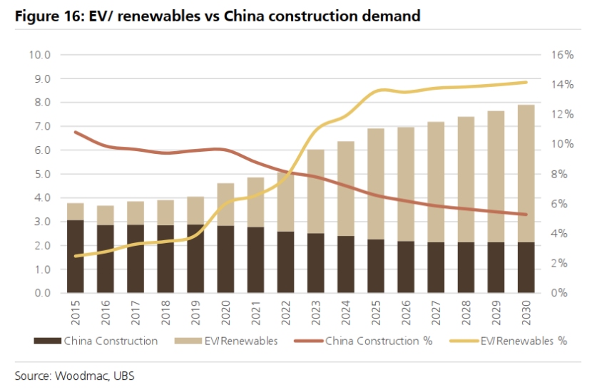 图16:电动汽车/可再生能源 vs 中国建筑需求