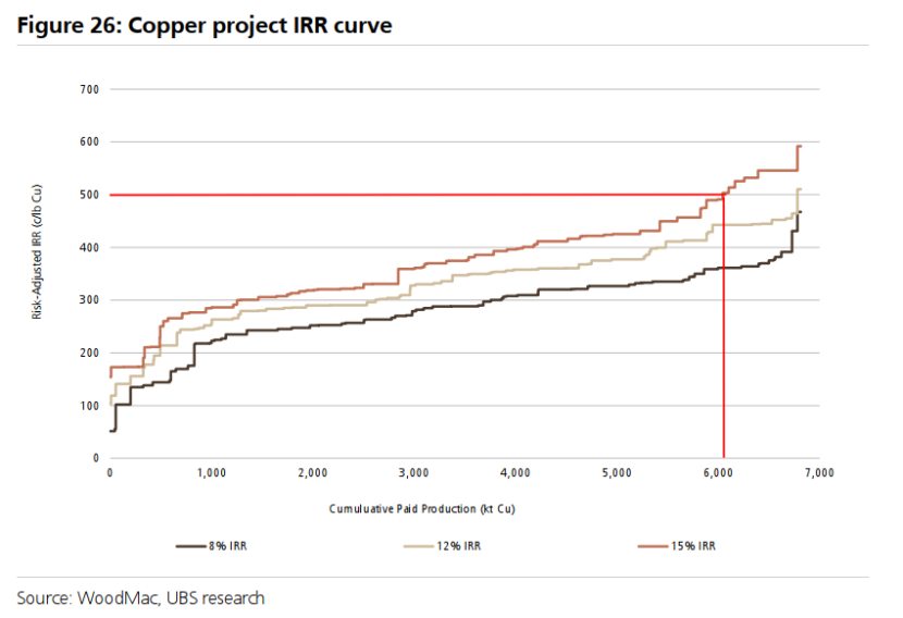 在审查了最新数据,注意到激励价格曲线在过去2年上涨了15-20%,并使用一致的方法(激励产生600-700万吨新供应所需的铜价)后,我们认为5.0美元/磅的价格似乎足以使大多数新项目产生可接受的回报(>15%内部收益率)。