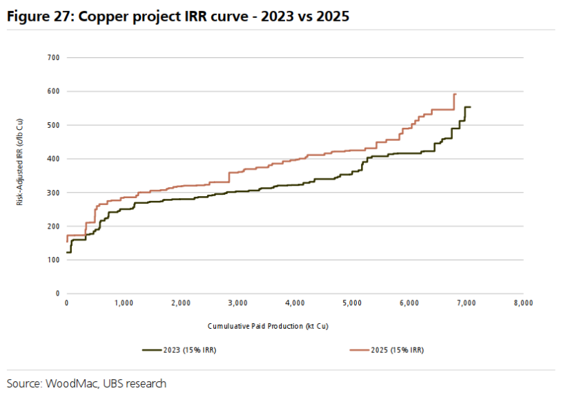 图27:铜项目内部收益率曲线——2023年 vs 2025年