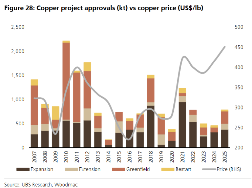 2025年批准量回升至约80万吨,但与历史水平相比仍然较低,假设3-4年的建设周期,过去4年约60万吨的批准量仍然低于约80万吨/年(按约3%计算)的趋势全球需求增长。我们继续预计未来几年新批准量将大幅增加。