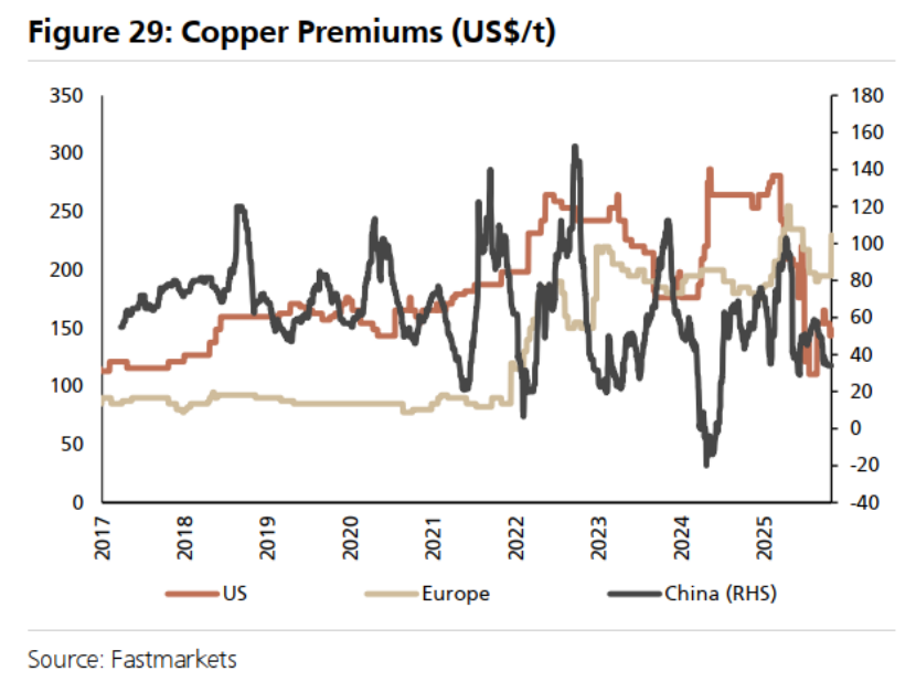 图29:铜溢价(美元/吨)