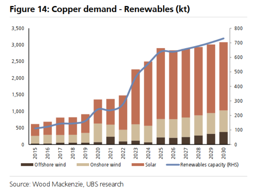 图14:铜需求——可再生能源(千吨)