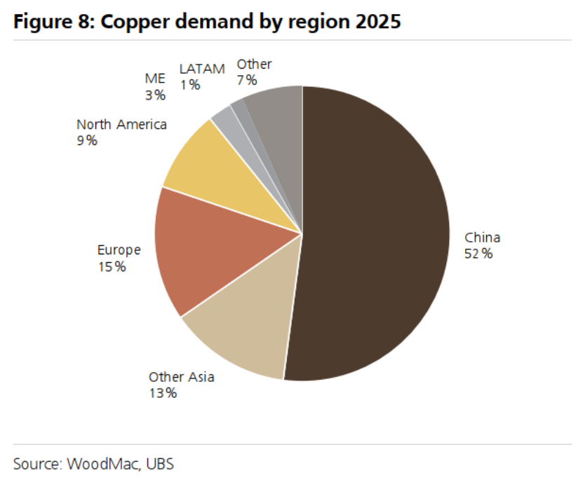 图8:2025年按地区划分的铜需求