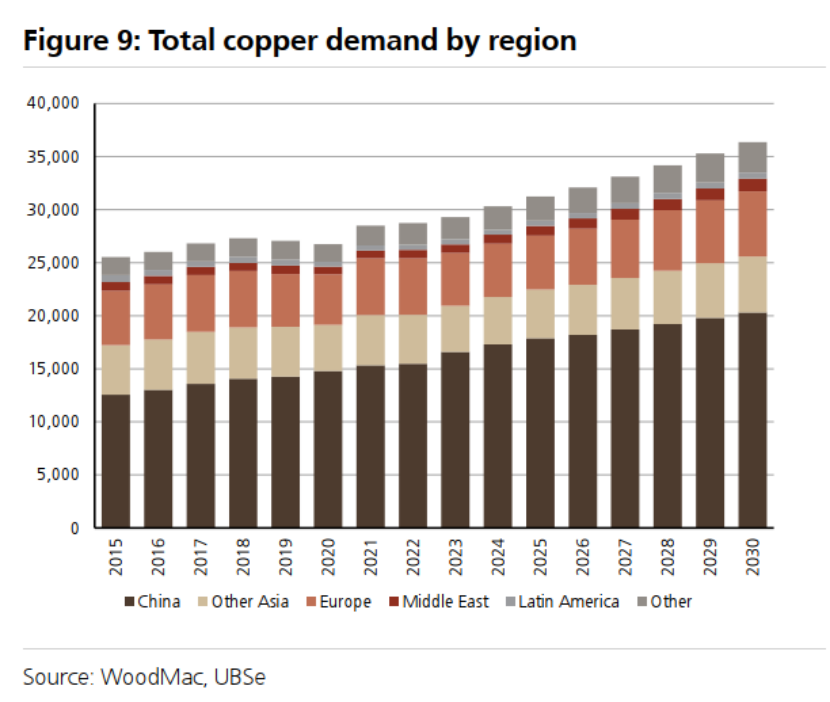 图9:按地区划分的总铜需求
